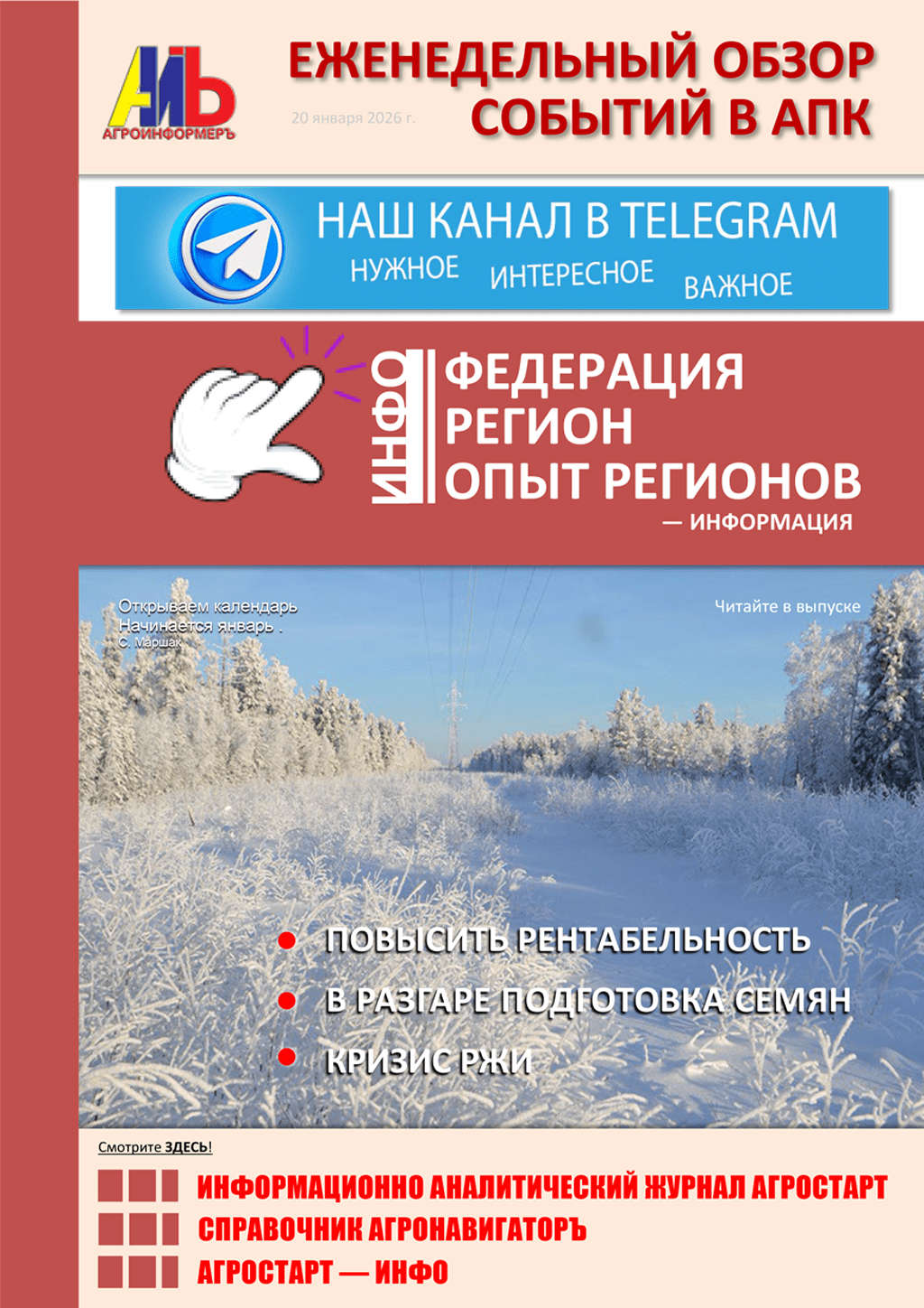 Еженедельный обзор событий в АПК за январь 2026 г